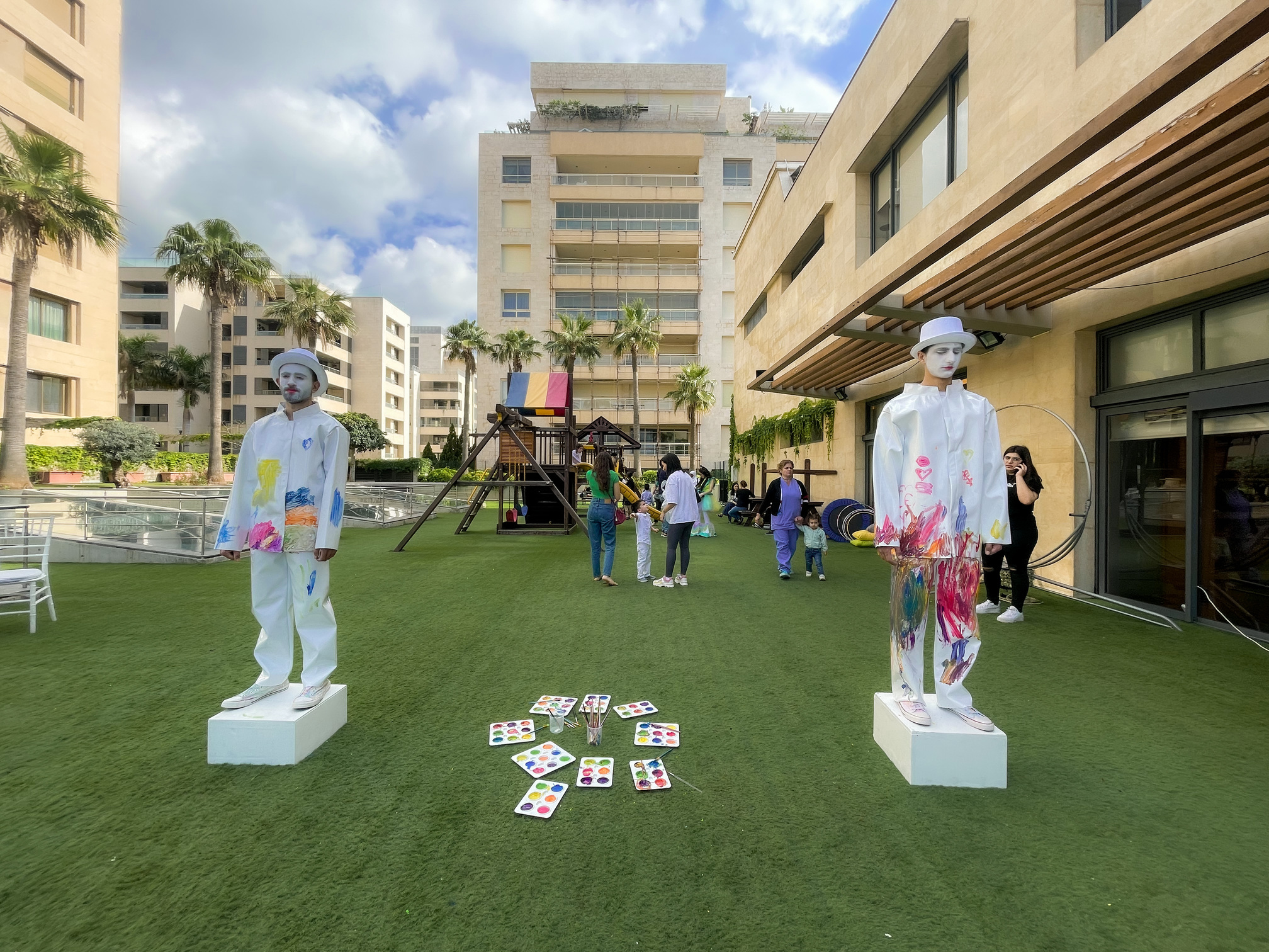 But that's not all—prepare to unleash your inner artist and paint white living statues, transforming them into vibrant masterpieces before your very eyes.