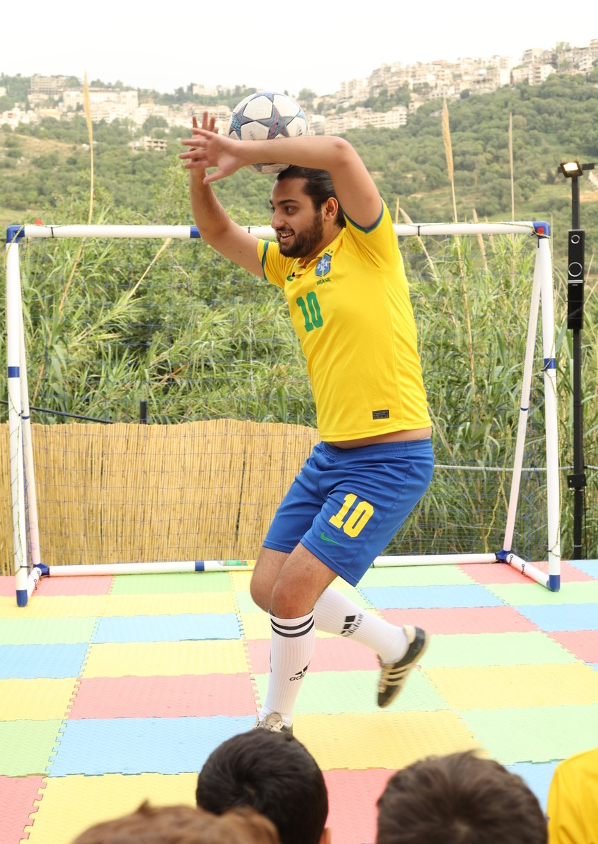 Watch as our skilled football freestyler defies gravity, dazzling the crowd with incredible tricks and flicks.